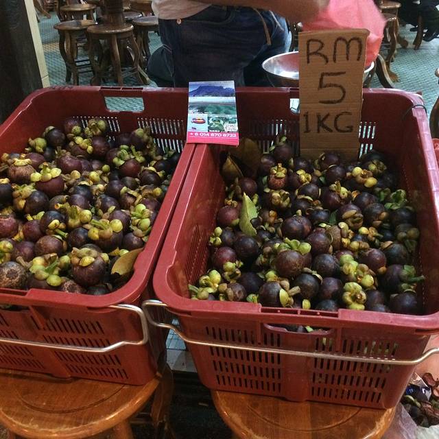 在大茄来回来的路上,碰见一车榴莲,在路边吃了两个(8马币),山竹是在冯业茶餐厅里吃的
