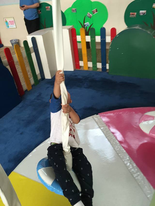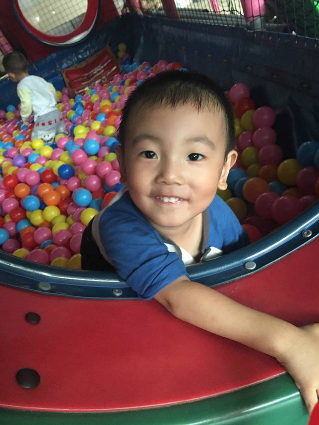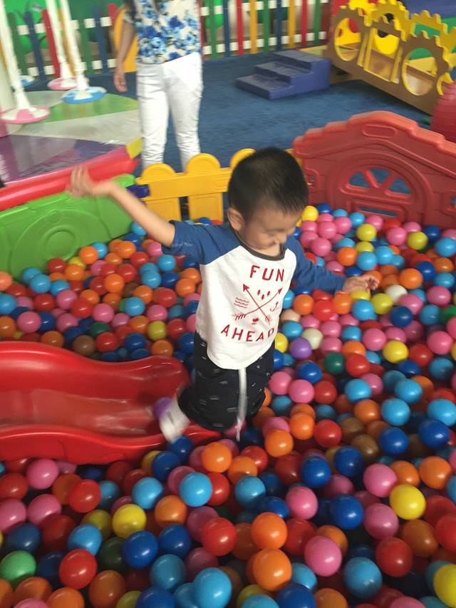 在这个蹦蹦床的海洋球里玩疯了,晚上只叫唤腿疼痛