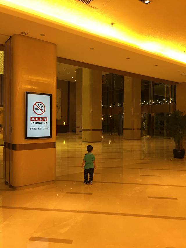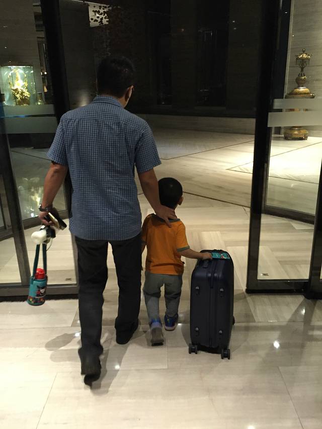 兜爸在外面吸烟,我办入住的时候,麦兜撞在了旋转门上,哭得哦