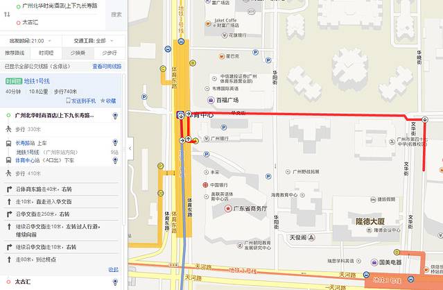 从长隆酒店(乘坐出租车共行驶1.2公里,费用约10元)到地铁汉溪长隆站A出入口乘坐 地铁三号线(天河客运站方向) (坐8站)到地铁体育西路站转乘 地铁一号线(西朗方向) (坐8站)到地铁长寿路站A出入口下。