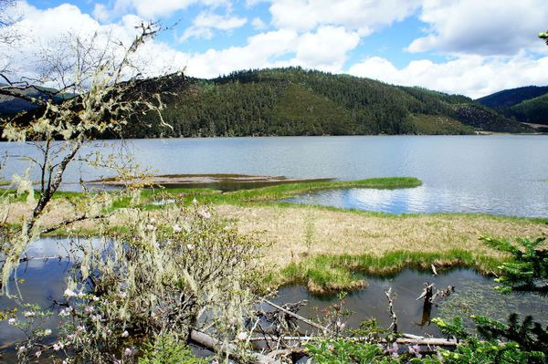 这里因为张杰和谢娜的婚礼名声大噪,不过还确实值得一游。湛蓝清澈的湖水,湖边枯萎树干的姿态,盛放的杜鹃,成片的水草,无处不是美景。