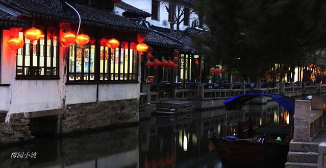 晚了,灯船也歇着了。所谓灯船,就是那些在夜间,挑着灯笼搭载客人的游船,据说,可以一直坐着灯船去同里。如果能听着那吱吱嘎嘎的摇橹,半梦、半醒、半醉着晃去同里,我是否有这样的机会呢?