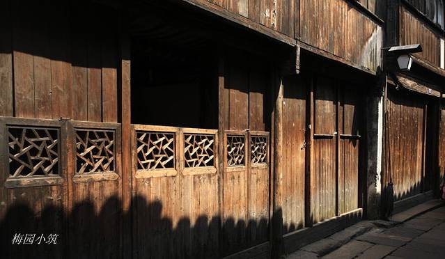 走进乌镇,在那用青石板铺成的狭窄的小街上,看到两边各式各样的民居和仍住在民房中的乡民,就会让人有一种亲切自然的感觉。乌镇里,还有些老人家住着,她们从窗口探出头来,用很委婉的吴音越语柔柔地交谈着,布满皱纹的手依然在忙碌着,剪剪花,拔拔草,让走过的我不由得有些抱歉,抱歉自己打扰到她们的生活。