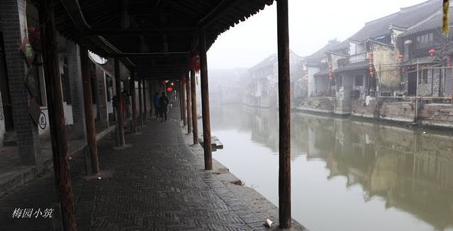 从客栈里出来,就是烟雨长廊。早春的西塘,没有雨,却有着浓密的雾,寒风依然犀利,我不由得又裹了裹衣服,抬头望过去,天空灰蒙蒙的,还没有到太阳升起来的时间,即使到了,也会被浓浓的晨雾挡住吧,我想。