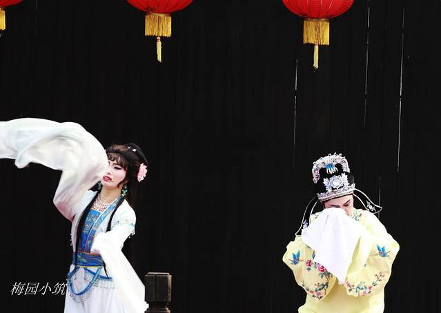 安顿下来,就又混入了人群。对面的戏台上,咿咿呀呀的越剧只是吸引了一群老人家。房东老板娘就是其中的一个,她正陶醉其中,跟着曲调低声哼唱着。那出戏,就是越剧里知名的“梁山伯与祝英台”,台上的人,用心的演着,台下的人,有几个会用心看呢?