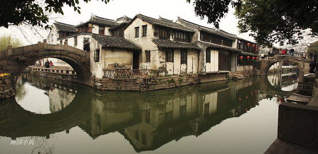 住的地方,是有些年代的老住户改建的客栈,古老的木质楼梯,很陡,走上去还咯咯吱吱的,伴着沉重的脚步声,倒是挺有韵律的。客栈离周庄著名的双桥很近,所以,来来回回总是经过那里。白天的双桥,总是被无数人簇拥着,包围着,很辛苦的样子。好在,我们的时间多,可以在清晨和傍晚避开人群。那时的双桥,更像是一首诗,一副画!