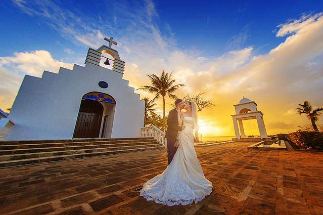 新娘穿上白纱会显得格外圣洁
