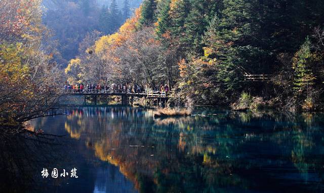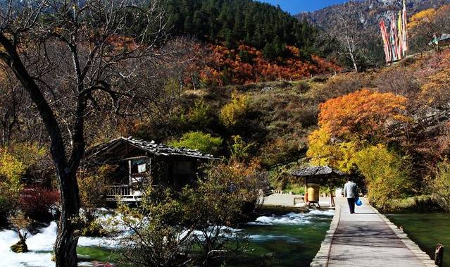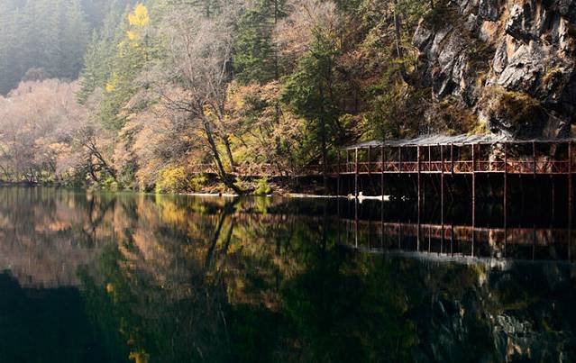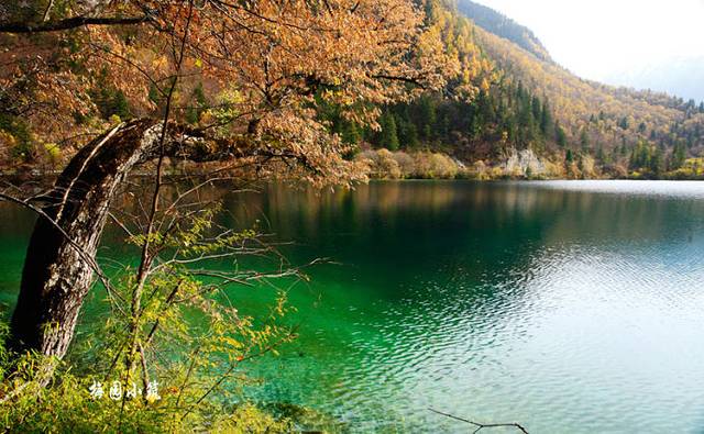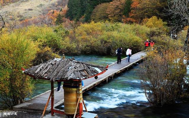 在九寨沟,是要用走的,虽然,沟里的巴士很是方便,随时身边都有车经过,把你带起想去的地方,但是,最美的地方往往是在路上,最好的景色都是在不经意间遇见,比如说风起而叶舞,比如说叶落而波起。