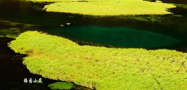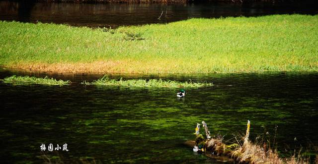有道是:天涯何处无芳草,可是,只有来到这里,才知道这里芳草的与众不同,才知道芳草还有那么多全然不同的色彩。那草呢,可以是浅绿的、深绿的、灰白的、淡褐色的、淡黄色的,不一而足,那深深浅浅的野草把水面分割成一块块的图案,考验着每个人的想象力。