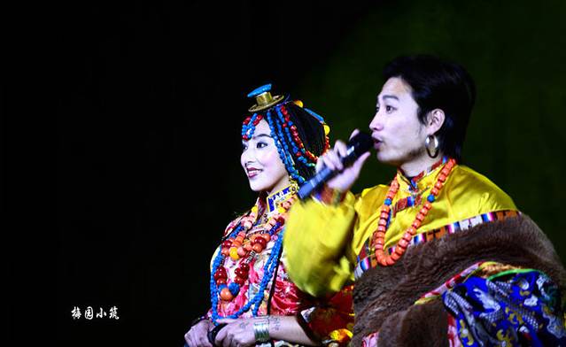 当然,这样热闹的场面也不会让观众们置身于事外,主持人时时邀请观众们互动,一起在舞台上跳起欢乐的锅庄啦,热情地为演员献上洁白的哈达啦,反正是诸如此类的活动,让场上、场下一片欢腾,让整整三个钟头一晃而过