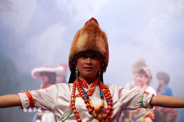 很喜欢藏族歌舞,虽然舞台表演中没有喇嘛颂经伴唱,依然是气势壮观,寓意深刻,有很强的艺术感染力。他们时而舞姿妩媚潇洒,婀娜多姿;时而生动活泼,热情奔放;时而缠绵浪漫;时而活泼热烈,舞动起来如奔驰的骏马,翱翔的雄鹰;欢歌起来如婉转的百灵,行云流水夜莺。