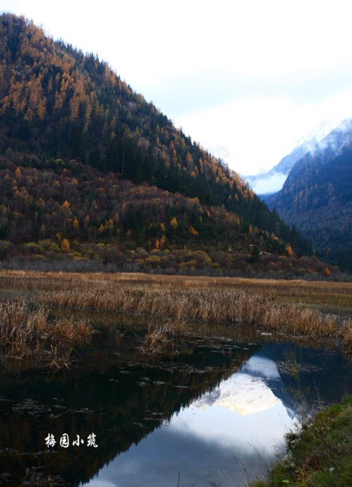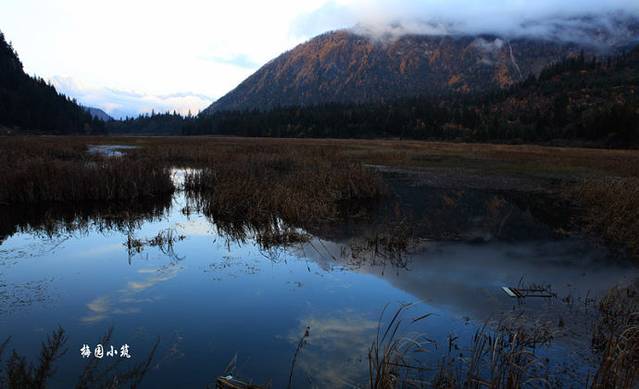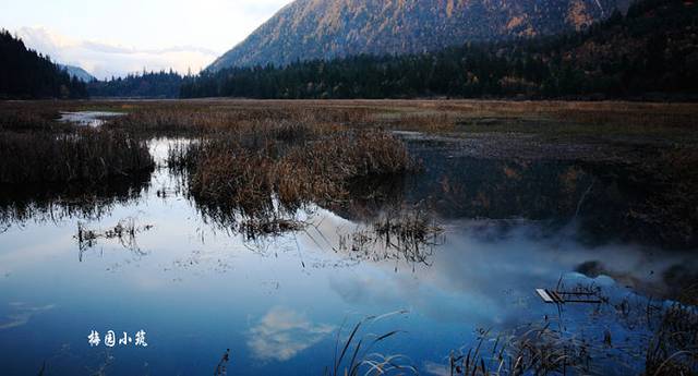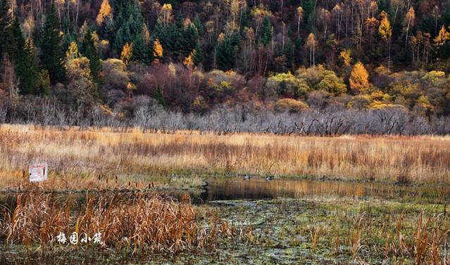从原始森林的游客中心,走到这里,大概要两个小时。有人说,在天鹅海,芳草海没有停车点,说实在的,我已经不记得了。日则沟,我几乎是走下来的。不过也许,我走得实在是太慢了,都怪一路上的风景,总是诱惑着我,走走、停停、拍拍,时时,还要坐下来享受一下难得的宁静,所以,走的慢也就是理所当然的了。