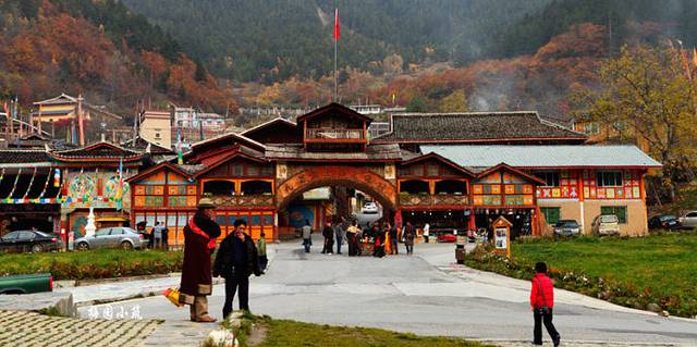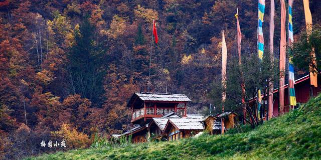 树正寨,是九寨沟第一大寨,从沟口乘上开往诺日朗中心的车,也就二十分钟吧,蓝天白云下的茫茫山林间,一片红白相间的藏寨就忽然呈现在眼前,这里,就是树正寨了,也是我住了两晚的地方。