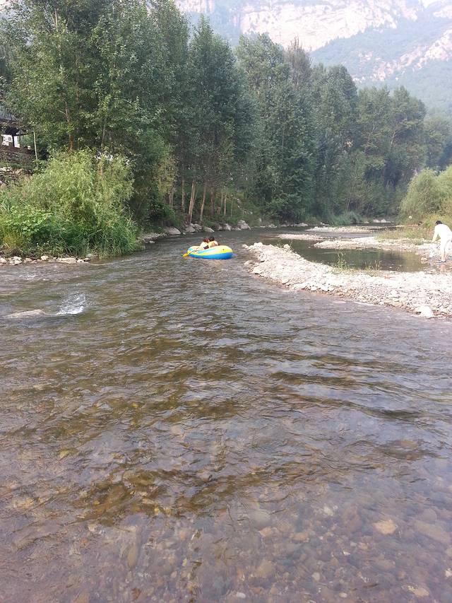 清凉谷景点下面河道的漂流,1.5小时,100-70元/皮划艇,不等,要砍价。