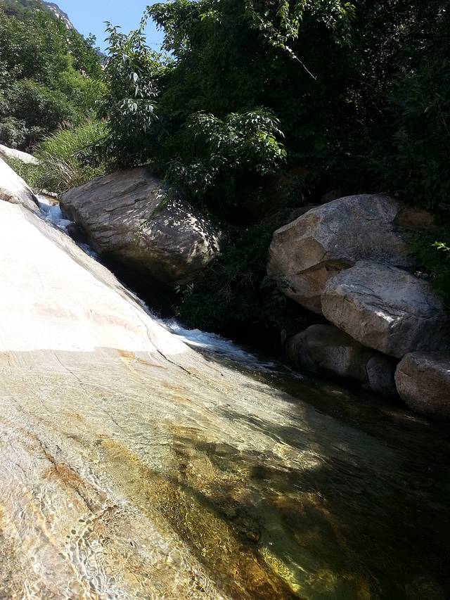 幽谷神潭,G111(京加路)丰宁方向路右侧,怀柔雁栖湖北15公里,作为怀柔的景点,还是非常近的。周五晚上北京冰雹、暴雨过后,周六早上天气非常不错,觉得进山贴近大自然,呵呵。