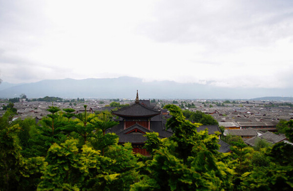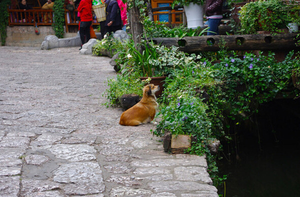 我们出木府前往狮子山万古楼,路遇一只狗妈妈在一家饭店门口讨食,好可爱~