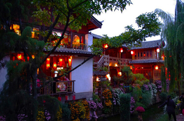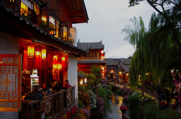 夜色降临,古城内灯火通明,我们选择了河边的顺水楼吃完饭,很有意境。