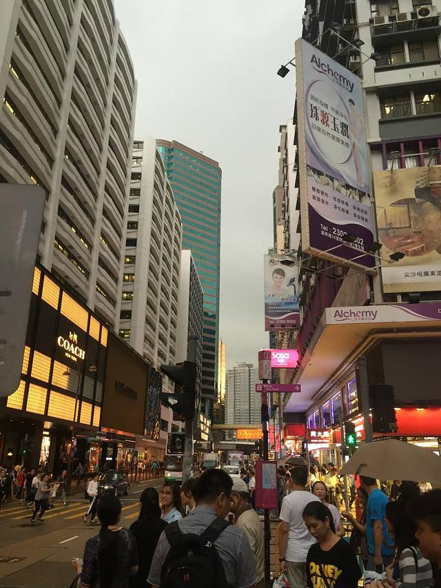 香港比新加坡面积稍微大些,人也多些,实际感觉香港要拥挤很多,到了尖沙咀的弥顿道就体会的到,来来回回终于在很小的门面找到宾馆门牌号。