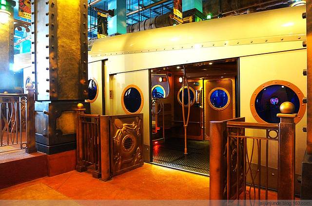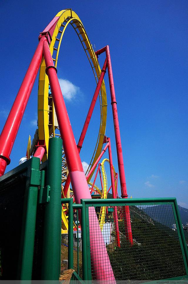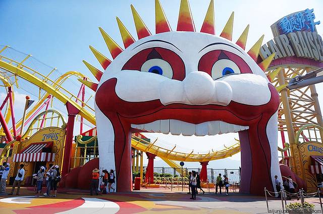 海洋公园的园区分为山上山下,其中多啦A梦法宝屋、星魅制片厂和奥尸卡制片厂是在山下的,参考上面介绍的时间,我们就先到山上去罗,乘坐列车哗啦啦就到了,到了山上我们还玩了好几样机动游戏呢