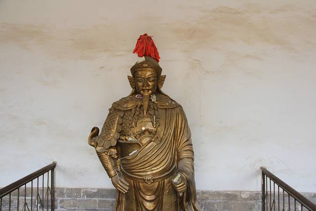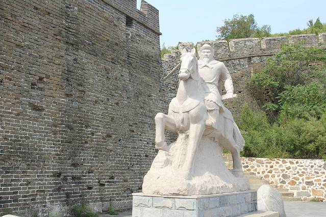 城垛楼下面戚继光塑像,旁边还有一排炮