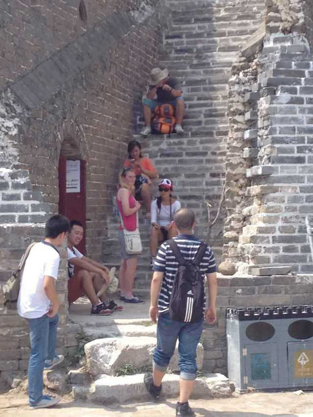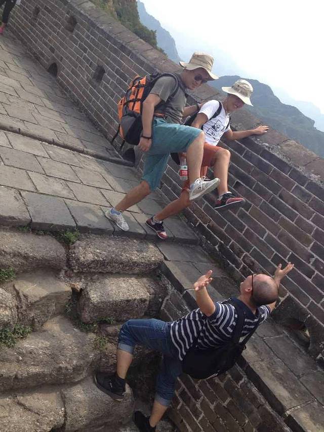 本司令累的不行了,单反都放在背包内,腾出双手好爬啊;低头擦汗的就是我