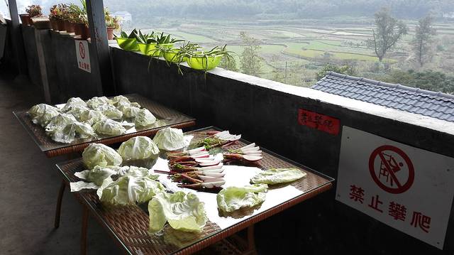 好朝霞,艳阳天,适合做泡菜,把昨天在桥口赶闹子买的坛子取出,刷洗干净晾好,又把包菜、长豆角、水红萝卜、仔姜、刀豆、荞头、红萝卜、黄山椒、五指辣一一洗净,该切的切,该撕的撕,在阳光下铺了一片。篱笆客栈的泡菜工坊准备开张了。