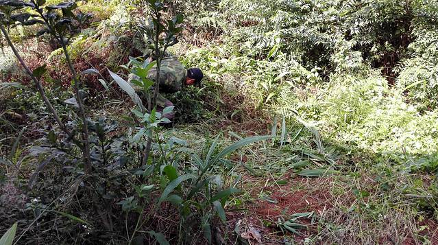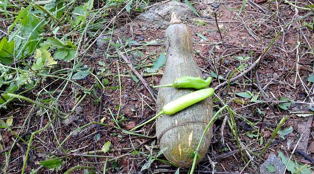 回到客栈看看日头并不强烈,且体力尚有余勇,于是谐同楼下夏师傅一起去整理自己那块地。地有三四个月没管,杂草比人高,那蓬苦瓜尤自花儿开个不停,表示这仍是块菜地。这块钱今年收获了几根苦瓜,几十个辣椒,黄瓜南瓜尽墨,人工费不算,菜苗钱尚未挣回。然后开始锄草,嘿,杂草丛中还找到了一个南瓜两个青辣椒,这我倒错怪了,原来南瓜一直在努力哦,只是主人太懒了。大草清理得差不多,堆在太阳下晒,过两天闷烧了便是很好的草木灰肥,再理一下杂草,便可下上海青和白萝卜。夏师傅说这土质不错,种萝卜正好。