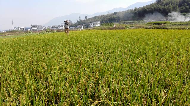 做完后差不多10点,出门去刘家叔家的地里摘些地瓜芯作午餐的菜蔬,地瓜芯即地瓜的嫩叶杆,清炒,口味甚好,以前只拿来喂猪。到地瓜地要先经过一片稻田,也是刘老叔家的,稻穗沉甸甸色泽金黄,丰收在即。前天来旁边那几块已杀过禾的地里挖泥鳅,一无所获,不知道这块田杀完后,有没有油爆泥鳅的可能。