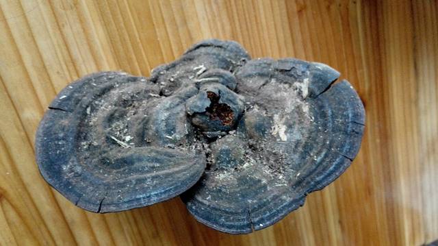 然后便没有现成路了,两人强行在竹窝里拱,坡陡路滑,走得狼狈,但退回更难,只能往上冲了。夏师傅浑身都长着眼睛,不象我只管闷头开路,在半山腰,夏师傅先发现了株灵芝,不大,四年生的样子。然后又找着根扁藤,听说泡酒极能壮阳。