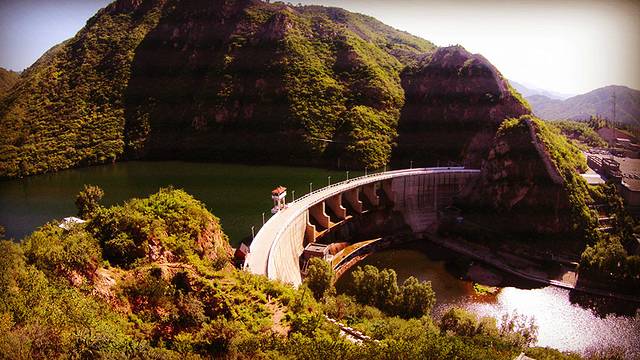 水库大坝,建址在原来的西水峪古关城址之下