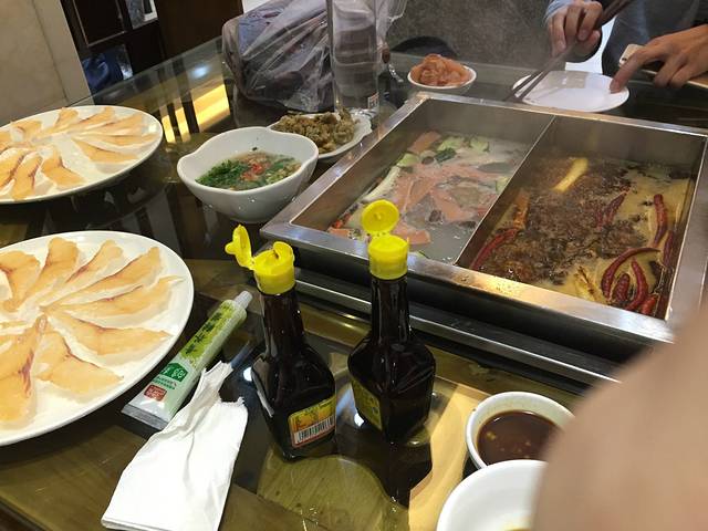 当地人都说花马街的东西好吃,因此我们从古城滴滴打车到花马街,大概就10块左右。试了有名的沱江鱼府,三文鱼是当场选了再宰的,好像挺新鲜的感觉。一般是3食,炸皮、生吃、打火锅,我们习惯了生吃,觉得很不错,鱼肉有弹性,看起来颜色不鲜艳,是因为它是淡水的,有别于平时吃的三文鱼。火锅底料味道不行,就普通味精汤,5块的酱料不喜欢,幸好只要了一份。吃鱼生的芥末酱油什么的要20多块一份,用不完可拿走,反正就一坑,跳一次就不会再跳了。