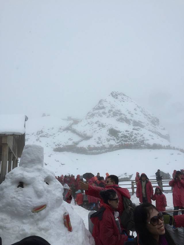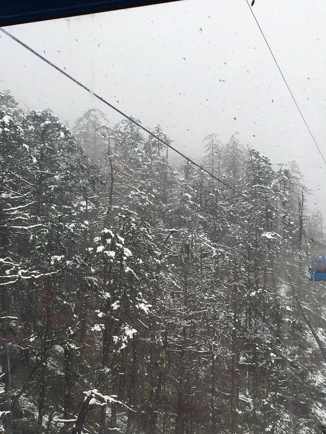 由于下雪了,所以坐索道时风景美美的,大概15分钟就到了,从1000多海拔瞬间到4000多海拔,少数人会有点不适,一般都没有什么感觉。下雪加大雾,在山顶根本看不到什么,最高点也不让上了,就玩一下雪感受一下就没了。下山后头超级痛,百度说这是高原反应,很难受!