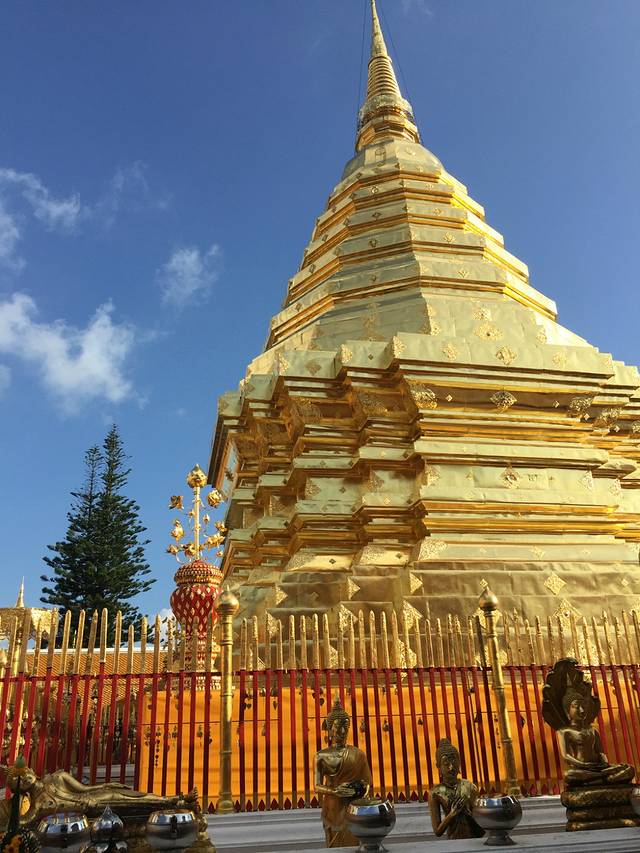 泰国国内转机很便宜,建议买泰航的,上去后有水果,有毯子,服务态度也很好,很干净!清迈我们住在古城内,没走多远就会有一个寺庙,都各有特色