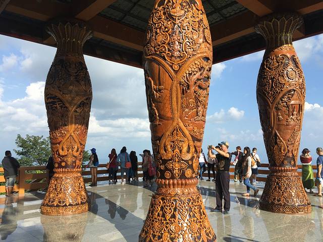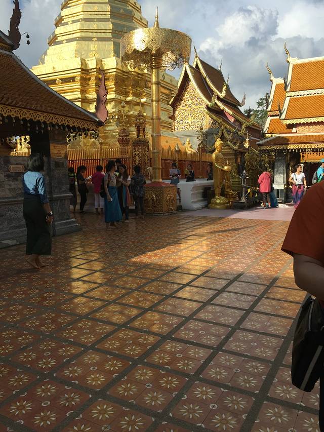大家千万不要买酒店推荐报团,自己坐双条车上去,人均40泰铢就搞定了,往返也就80泰铢,双龙寺是不要门票的,只有车费,我们报了酒店推荐的半日游,500泰铢,后悔的不行,双龙寺里面金碧辉煌的,香火很旺!最值得去的地方时观景台,可以看到清迈的全景,四根大柱子也很雄伟霸气。