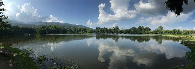 清迈大学说实话相对于中国的大学来说太一般了,不大,只是在素贴山脚下,很凉快,让人觉得很静谧,不许人步行进去,只能坐游览车,60泰铢一个人,说的是三十分钟,其实在路上最多十分钟,还有的时间就是在里面的一个湖欣赏一下。