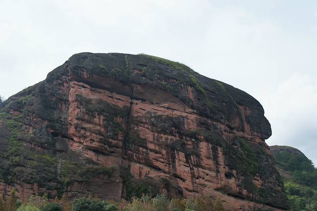上午还有一个重要的行程就是泸溪竹筏漂流。从上清古镇坐交通车竹筏漂流码头,通票含有竹筏漂流票,不过1.2以下的小孩子也要补一张30元的竹筏座位票。竹筏随水流而下,两岸青山绿水,各种地形的丹霞山屹立在两岸,很多高耸的山崖上有大大小小的洞穴,神奇的古老悬棺就在这些洞穴之中。起初竹筏漂流的船工讲解非常精彩,没有讲解很多象形的东西没办法意会。船工讲解费每人10元,同船的散客嫌贵,我们也不好说,船工也很实际的不讲了。一路看景,自己想象,自个欣赏,自得其乐。竹筏漂流时间大约40分钟,靠岸后经过仙女岩,这时候才发现昨天傍晚去看仙女岩是多余的。