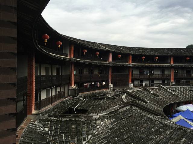 下午三点到的大地土楼群,位置有点偏僻,从华安收费站下的高速,还有26公里的山路,三路十八弯,车速受限,这一段就花了四五十分钟。门票是去哪儿网上购买的,两张票74元,比现场票便宜了很多。一到售票处附近就有很多当地村民过来拦车,说是可以便宜带进去还兼职导游。现场兑票很方便,导游需要另请,60元一个导游,不限游客人数,就三个人随意参观当然不需要导游了。门口的保安小哥非常热情,带我们换票,并告诉我们说车可以开进去停在十字路口,停车免费,而且说有门票后里面再没有强制消费的项目了。给保安小哥赞一个!