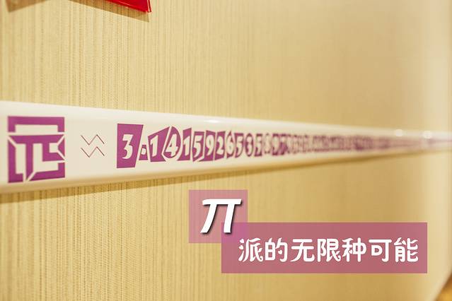 因为旅途疲倦,想到房间休息,却被走廊墙壁上无尽延伸的3.1415926……所吸引。这一串无限不循环小数,诉说着无限循环的“圆形”的故事,也带着我走向一个无限种可能的世界。楼道很安静,我又被挂在墙上的图画所吸引,这些印象派画作配上无限不循环的π,仿佛要带我进入一个四维的空间。