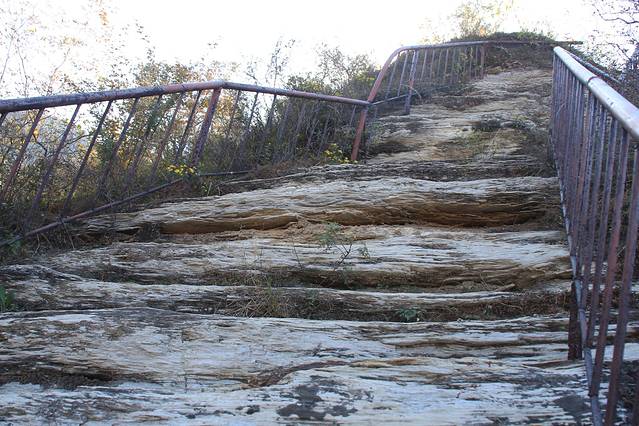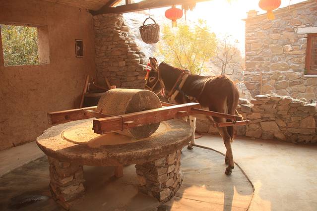 所有的道路都是用石板铺成,扶手栏杆必须用到水泥的地方也伪装得很巧妙。