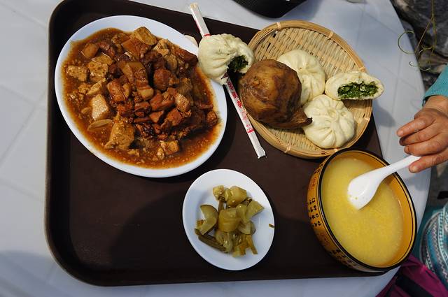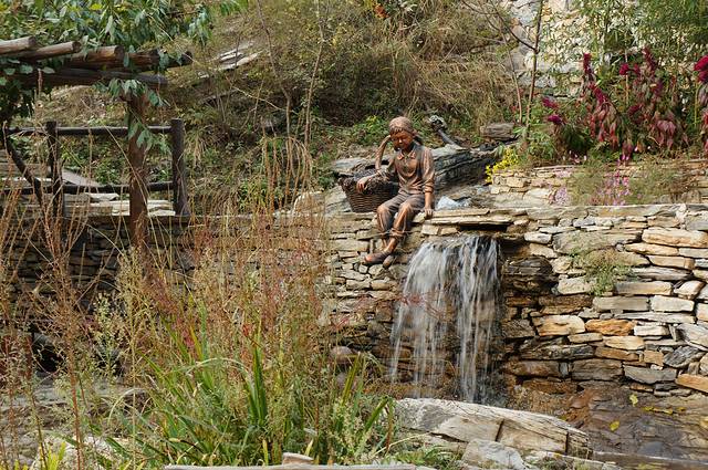 山下的“红背篓餐饮部”设计得乡土气息很地道。附近的几个人物造型也很有特色。中午在山下“红背篓”用餐,费用是相当的便宜