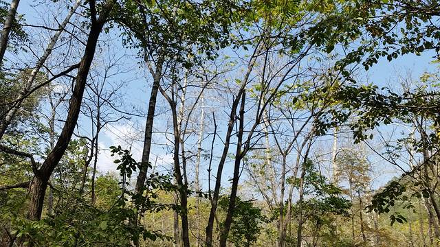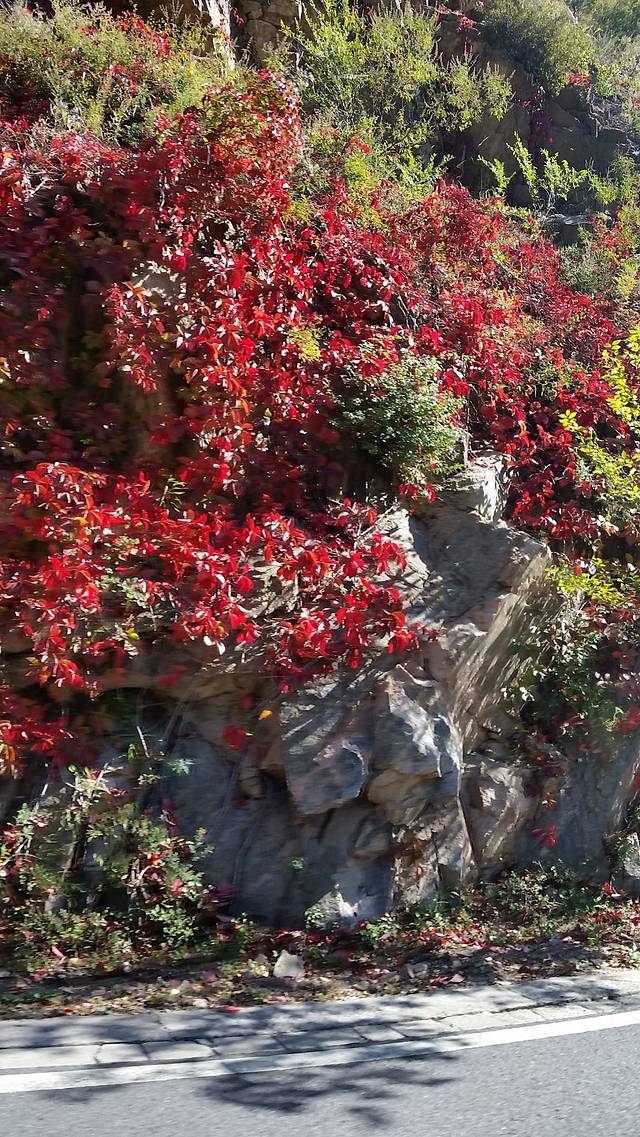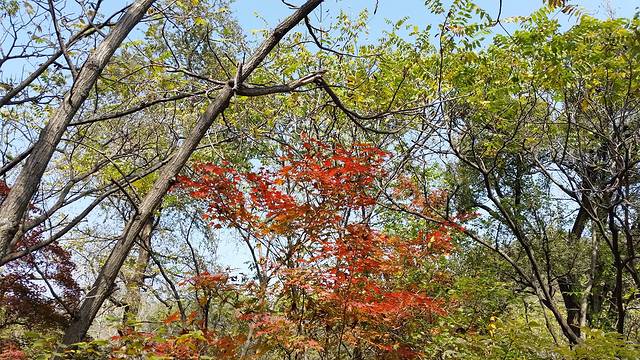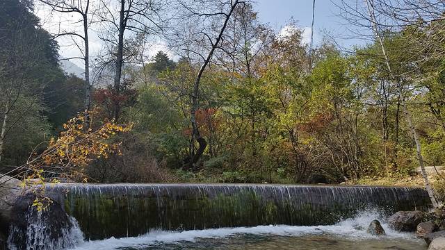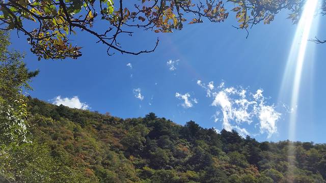 松山森林旅游区:松山玉渡山龙庆峡都属于燕山山脉,松山在西边,玉渡山在中间,龙庆峡在东边,农家院只能开出玉渡山和百崖居的优惠条子(这两地是延庆政府开发的),松山属于北京市开发的景区,只能从网上购买优惠的电子门票啦,价格是54,这里明显比玉渡山管理好很多,大门很气派,也比较正规,九点进山能看到工作人员在打扫落叶,山里立着很多关于森林以及地质知识的牌子,赏景锻炼之余还可以学点东西