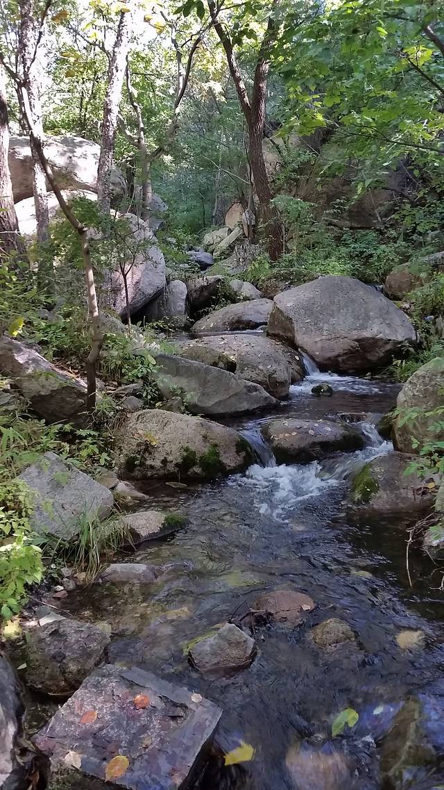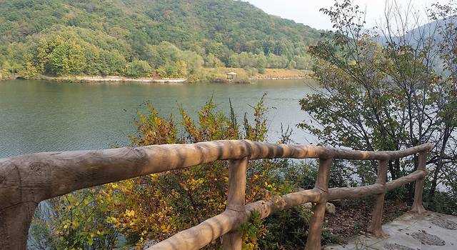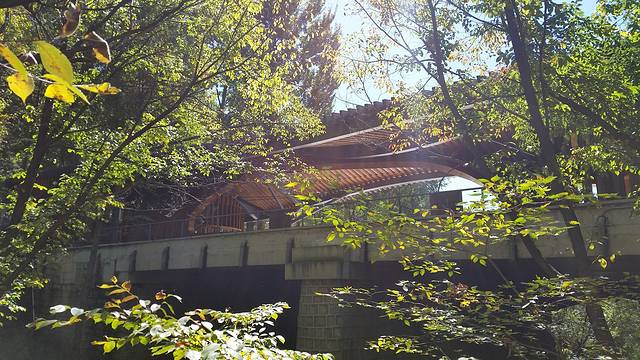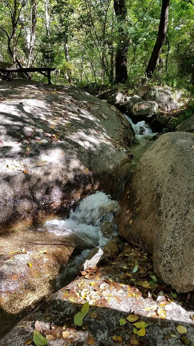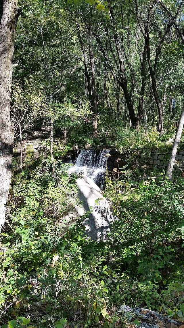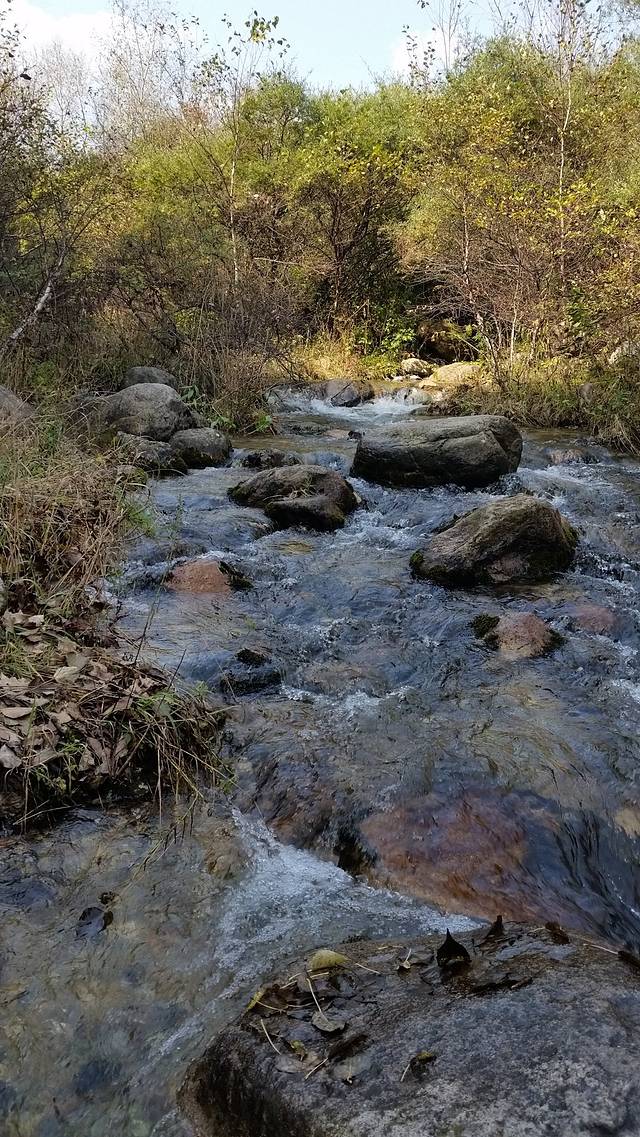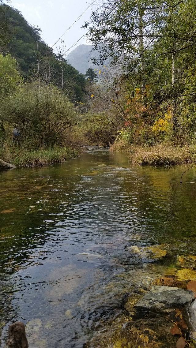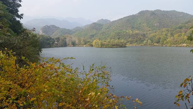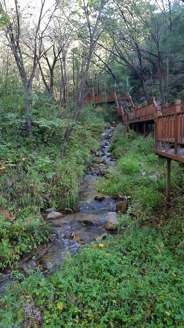 玉渡山没有车是不让进的,门票原价60,农家院的老板给开条买票可以每人优惠20,从山脚售票处买票,盘山到山顶停车场差不多十多分钟,要是走上去就要走死了,盘山路两旁的爬墙虎已经红了,我们先沿着小溪往深山里去,今年雨量充沛,溪水非常清澈,空气很清新,一路上有很多大尾巴的小松鼠,基本都是平路,适合一家老小一起来,二十分钟后到玉渡山山顶,总共也就二三十级台阶就上去了,从山里出来,往回走先到草甸,适合遛狗遛孩子,有一个水池子,里面养着金鱼和芦苇,再往回走就是忘忧湖,沿着环湖西路往里走风景更好,走了半圈一个小时。如果当天回北京也是来得及的,但是我们第二天要去松山,所以就住一晚了。
