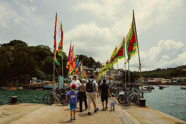 到了岛上才知道我们遇上了一年一度的龙舟比赛,不过当时已经接近中午,暴晒得厉害,没有停下来观看,直接就开始逛了起来。在南丫岛实在不用什么攻略,只要沿着指示牌走就可以了,而且有些还标明了到达下一个目的地所需时间。但是像我们这种走走歇歇拍拍的,从榕树湾到索罟湾官方估计是2个小时的路程,我们足足用了5个小时,也是累瘫了。