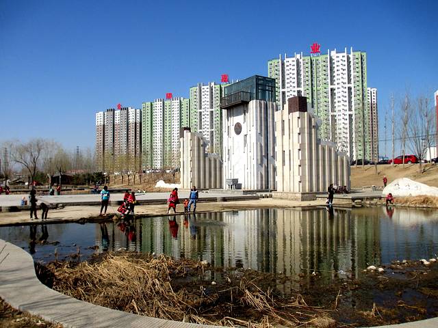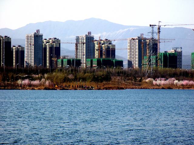 远处的楼还在建,应该是属于门头沟了,而莲石湖则属于石景山。