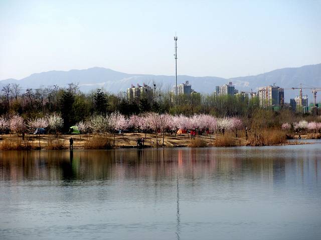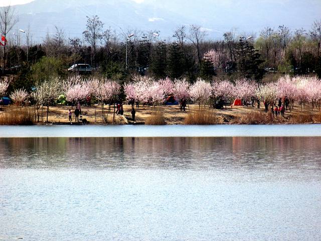 莲石湖太大,走不了太多。只能远看湖对面的山桃花。