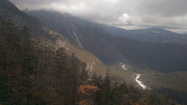 之后坐索道上玉龙雪山,我们那天人不多,没怎么排队就坐上了缆车。在途中还看到了彩虹。