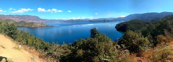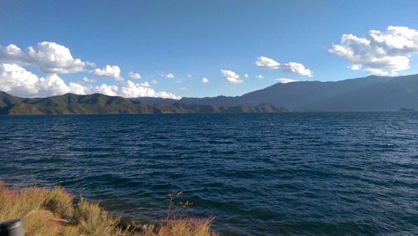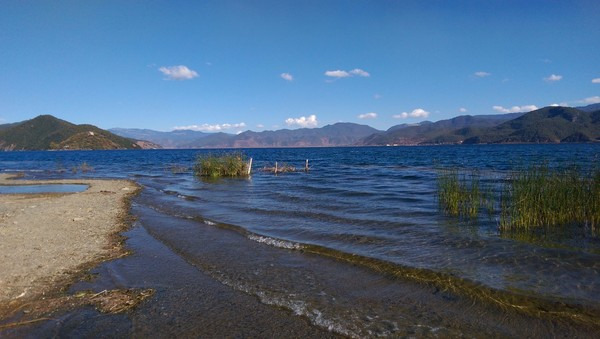 下午2点半的时候,终于到达了泸沽湖边。当看到那湛蓝湖水的时候,觉得路途的辛苦还是值得的。泸沽湖现在还保留着走婚制度,属于母系氏族。