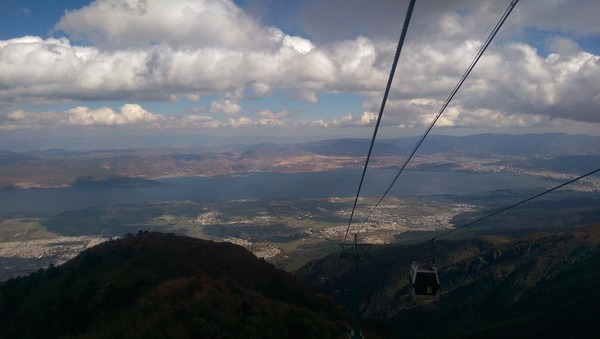 在缆车上,可以俯瞰洱海,感觉挺不错。