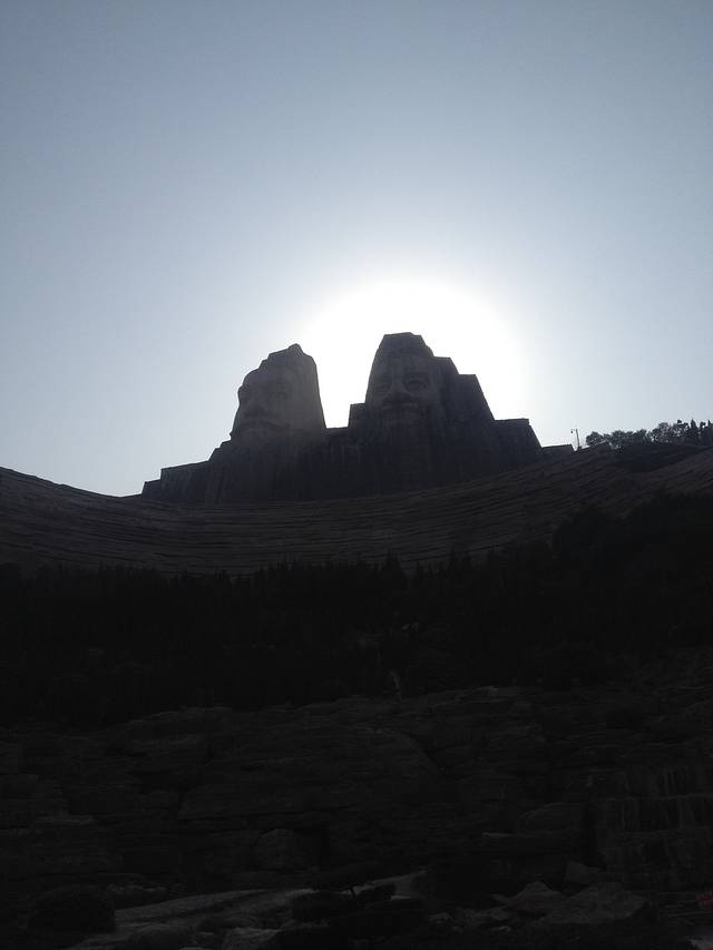 西山石窟对面是东山石窟,这是我们在东山石窟山远眺西山石窟的全景。相比之下,东山石窟风化较为严重,观赏价值不如西山石窟。或许是因为长途驾车的劳累,我们只是草草看看,拍了几张照片就奔赴下一站了。