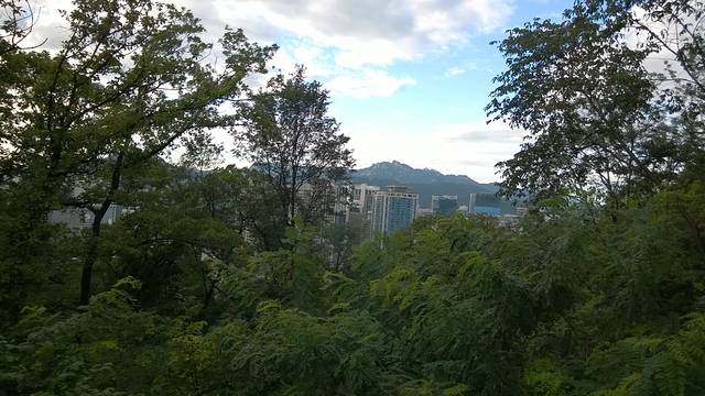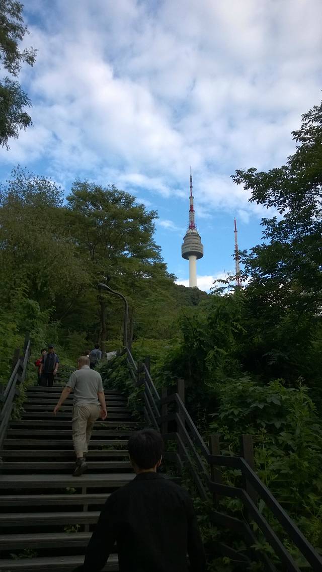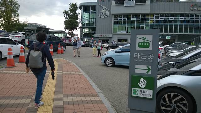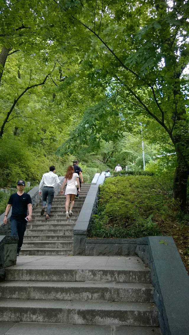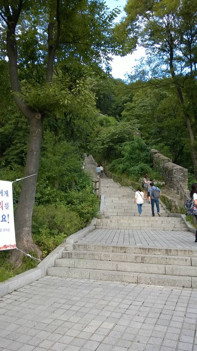 你看!虽然是大早上,但是已经有好多人来啦!大家都很明智呢!这里是乘坐缆车上山的地方,但是眼看着山就不高,而且看到有的韩国大姐姐,穿着高跟鞋就开始登啦~那我们也就走上去吧!重要的是沿途的风景也可以欣赏下嘛~